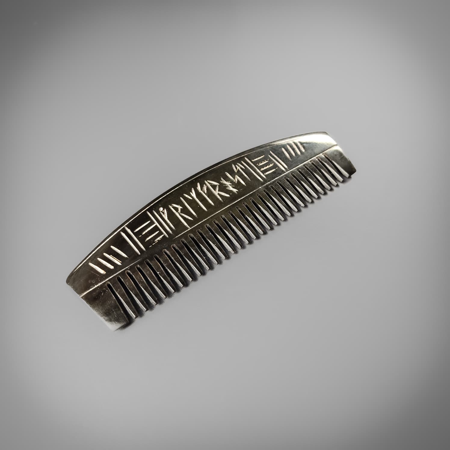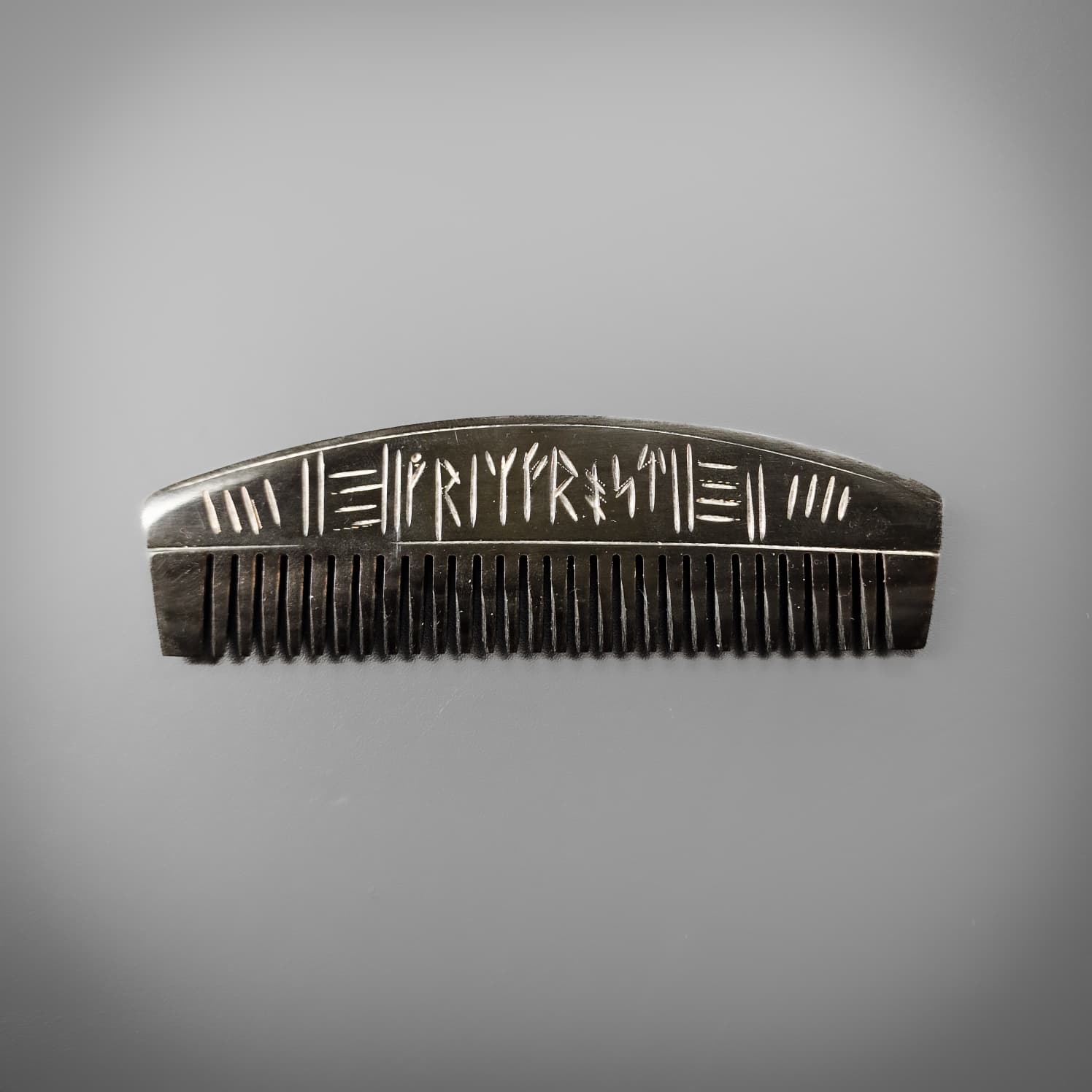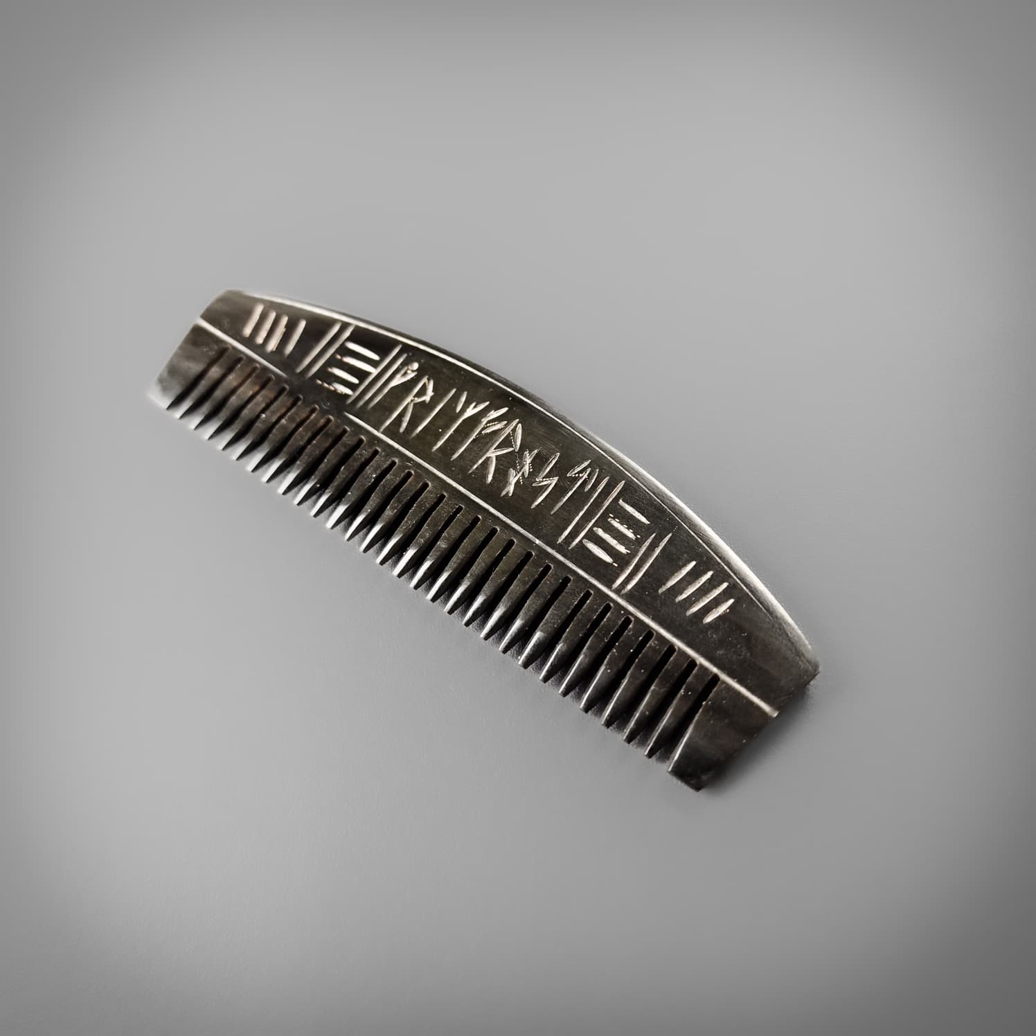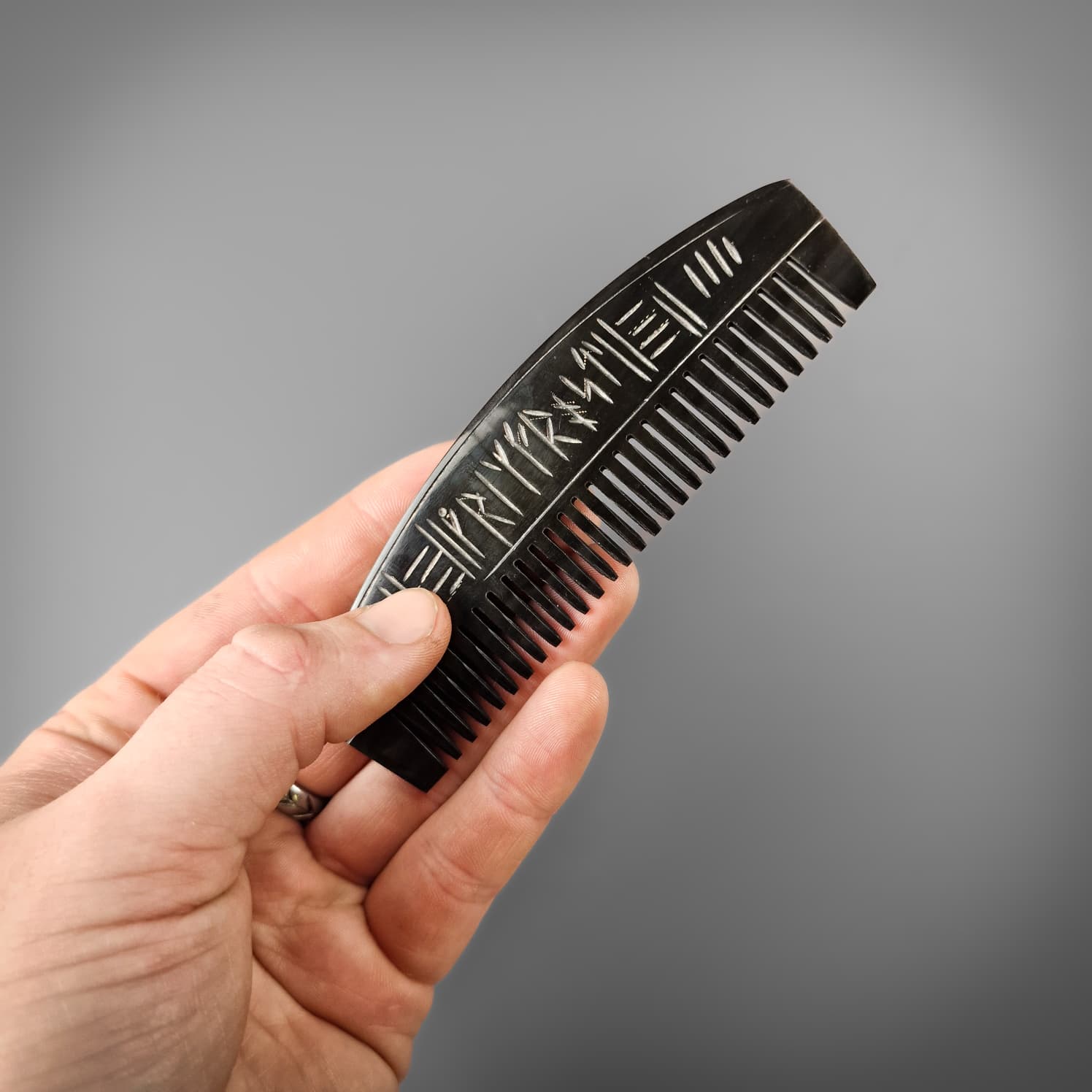 Fear no more! Gone are the days of flexible plastic combs, your beard deserves better. This beautifully crafted horn comb is perfect for at home or on the go featuring hand craved runes in a stunning polished finish.