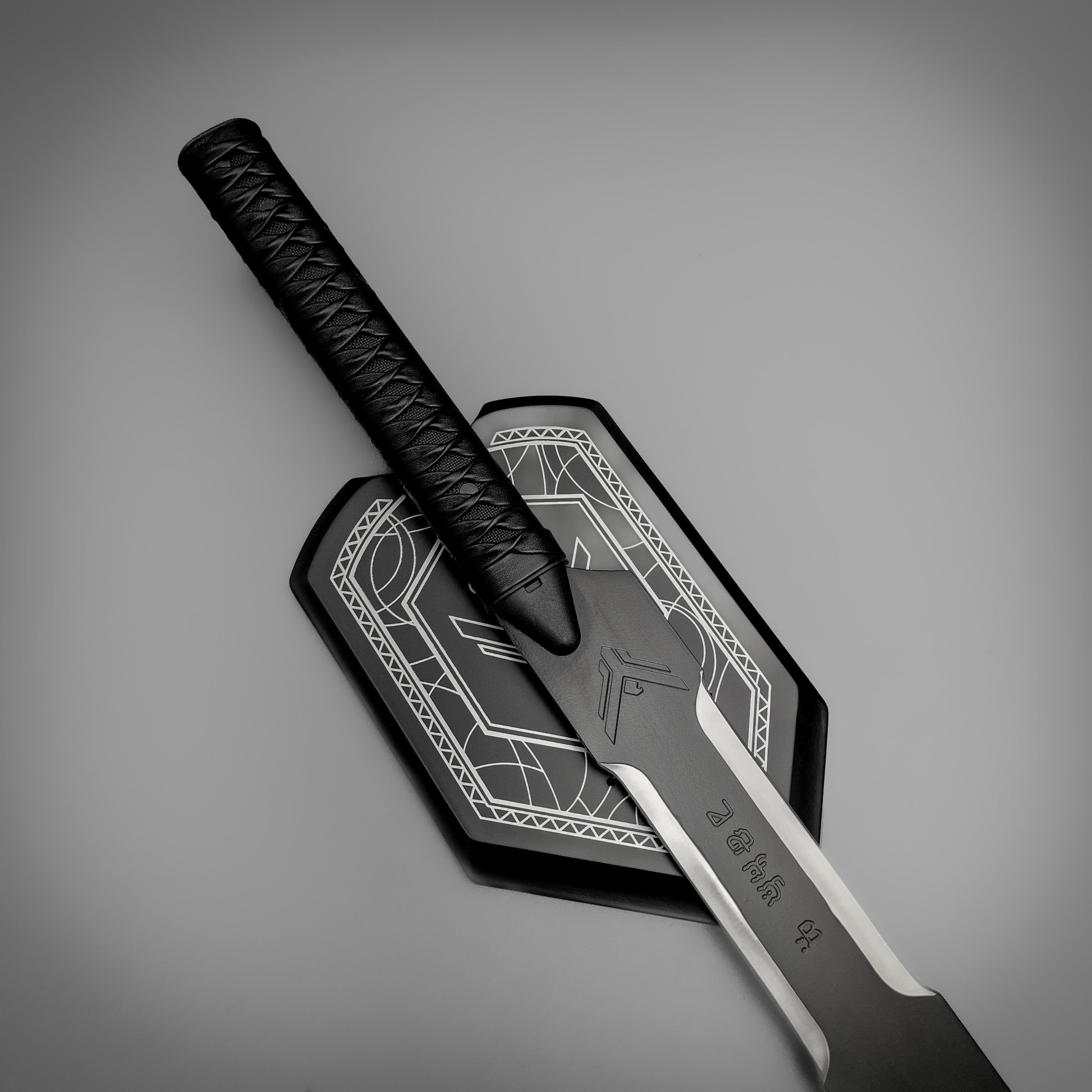 United Cutlery’s Duncan Idaho replica long blade is an exact reproduction of the actual filming prop used in the films. A 3cr13 stainless steel blade is 4mm thick and finished in a semi-gloss black coating. The blade is engraved with the Caladanian letters TVWYZ, which is an acronym for “Triumph of Valor and Will as Your Zenith.” The hawk sigil of House Atreides is stamped just above the handle.