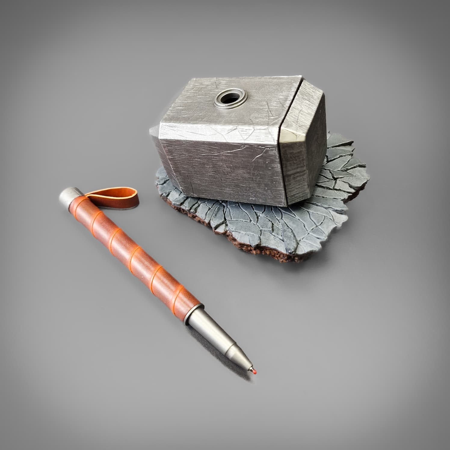 A collectible desk accessory inspired by Thor’s iconic hammer