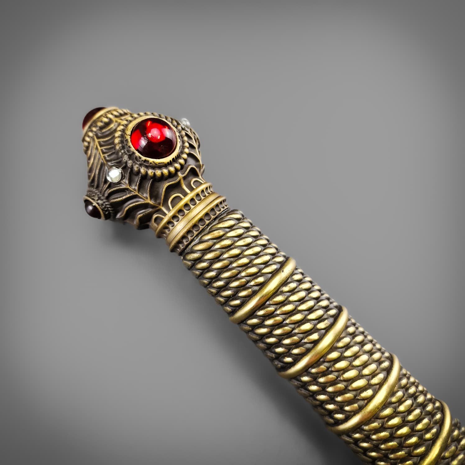 Hilt: Bronze plated cast metal with faux jewels.