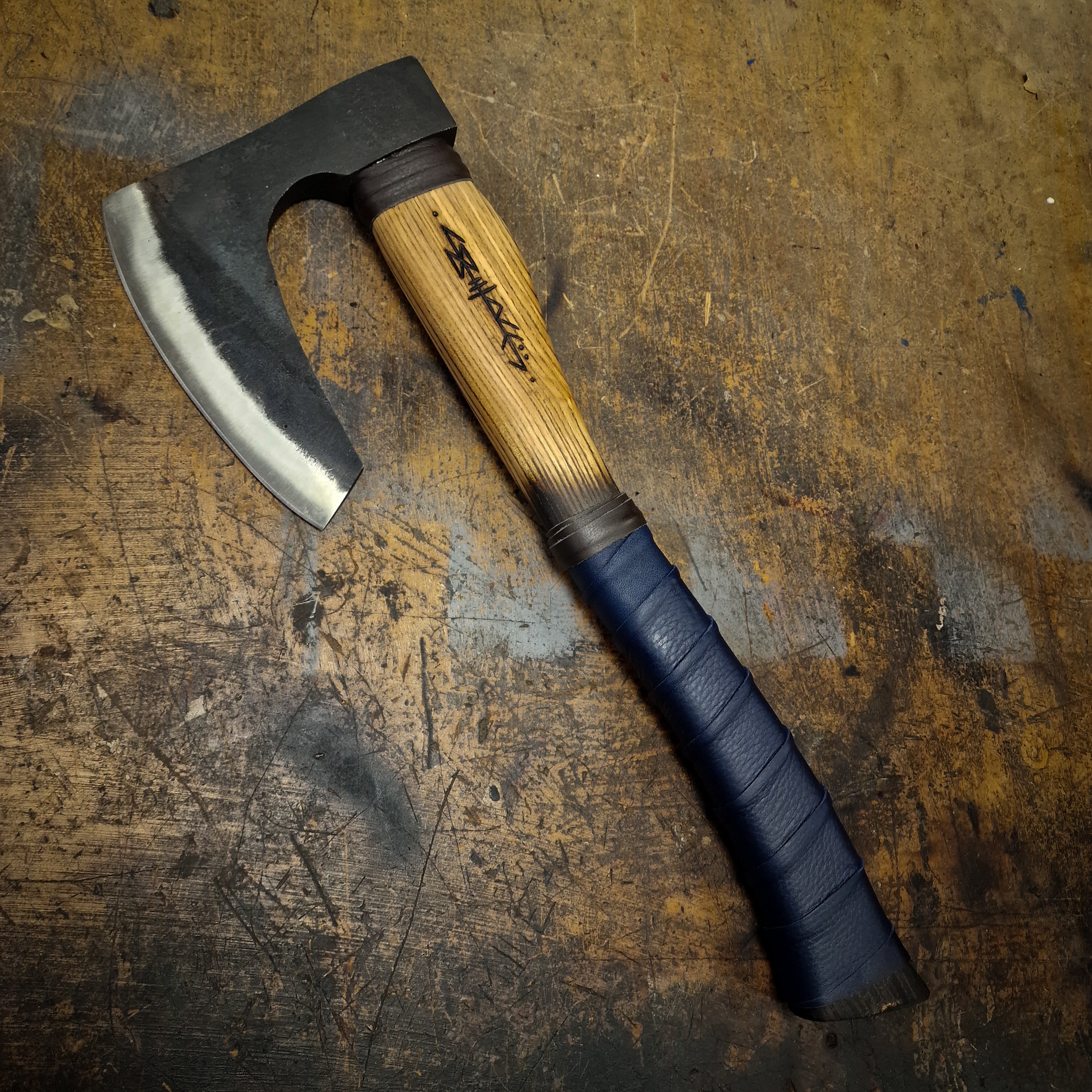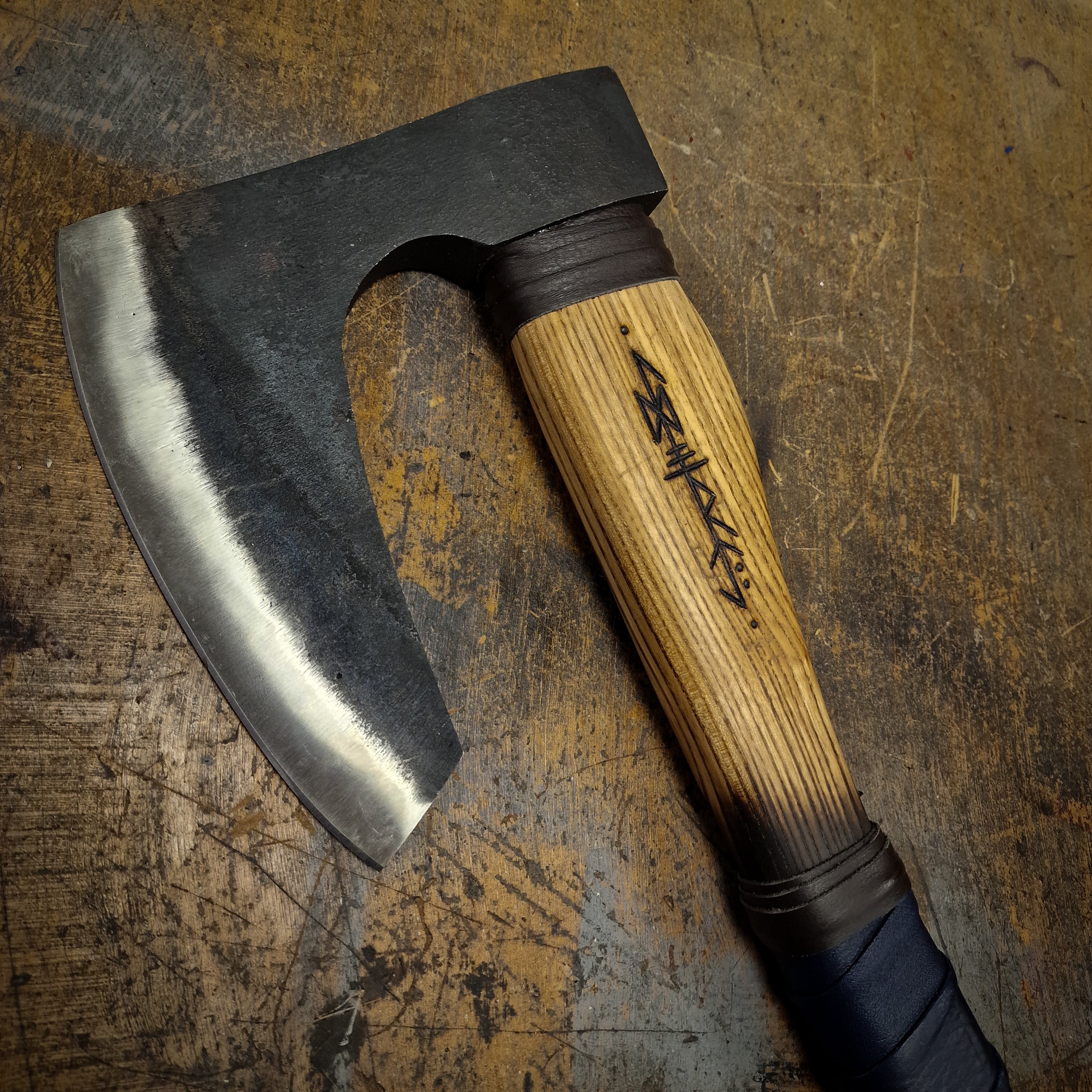 The Woodsman axe is a perfect companion to the outdoorsman. The head of the axe is made from durable high carbon steel. To finish, the blade has been sharpened to a cutting edge and has been hafted on a 47cm half charred length of English Ash.