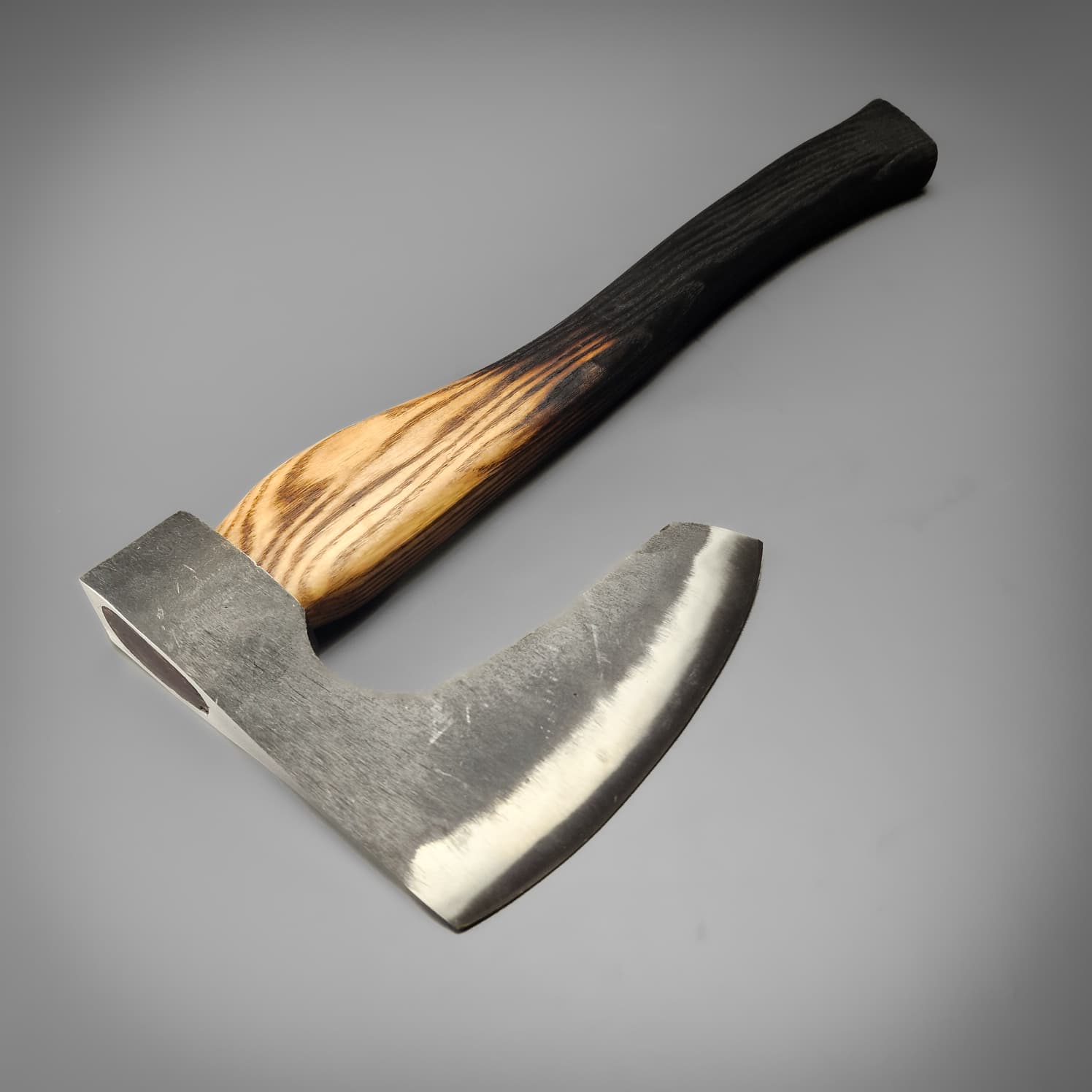 The Hook axe is a perfect companion to the outdoorsman. The head of the axe is made from durable high carbon steel. To finish, the blade has been sharpened to a cutting edge and has been hafted on a 47cm half charred length of English Ash.