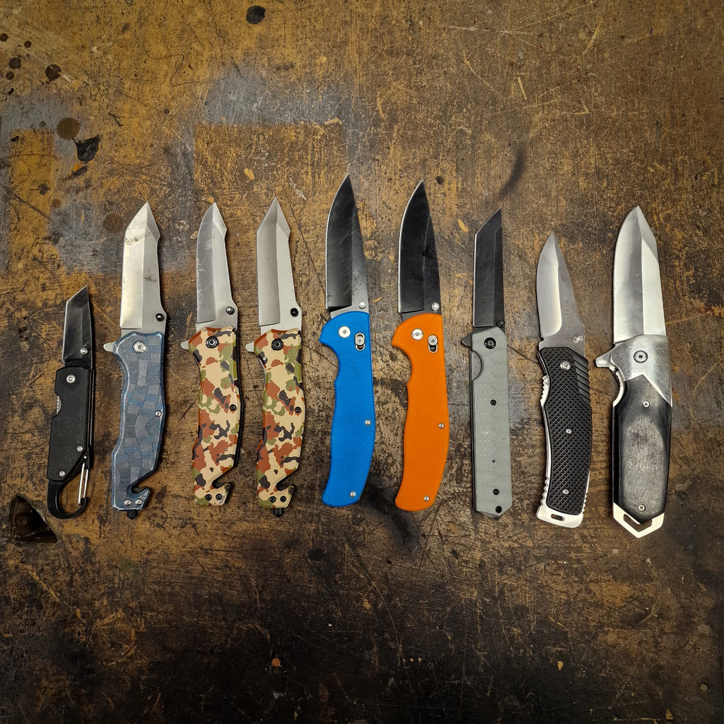 Battle tested around the Raven Forge warehouse these folding knives between them have opened thousands of boxes. But its time for them to find a new home. Due to their heavy use these knives are being listed with a range of issues. They are on a lucky dip basis and may need some care to make them functional.