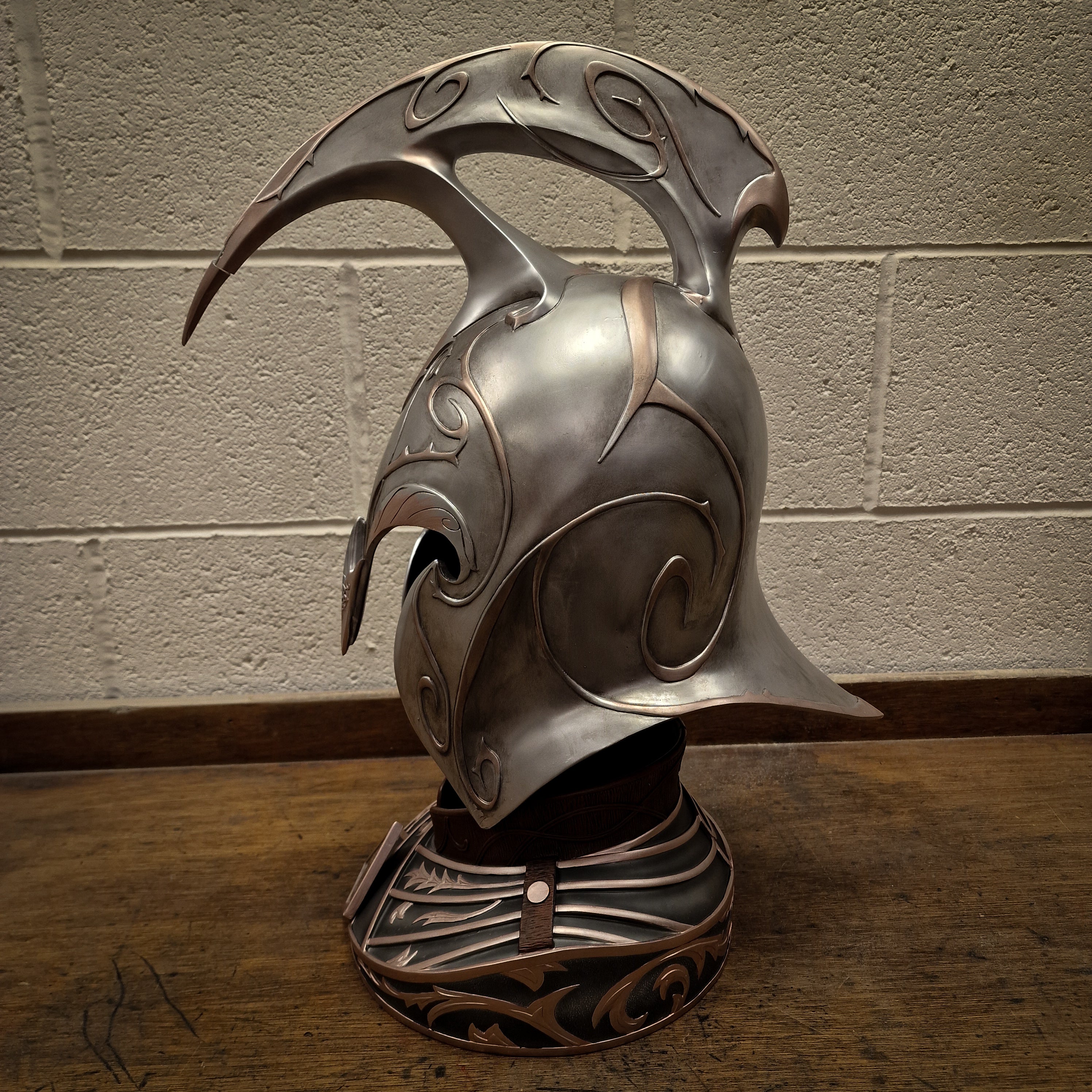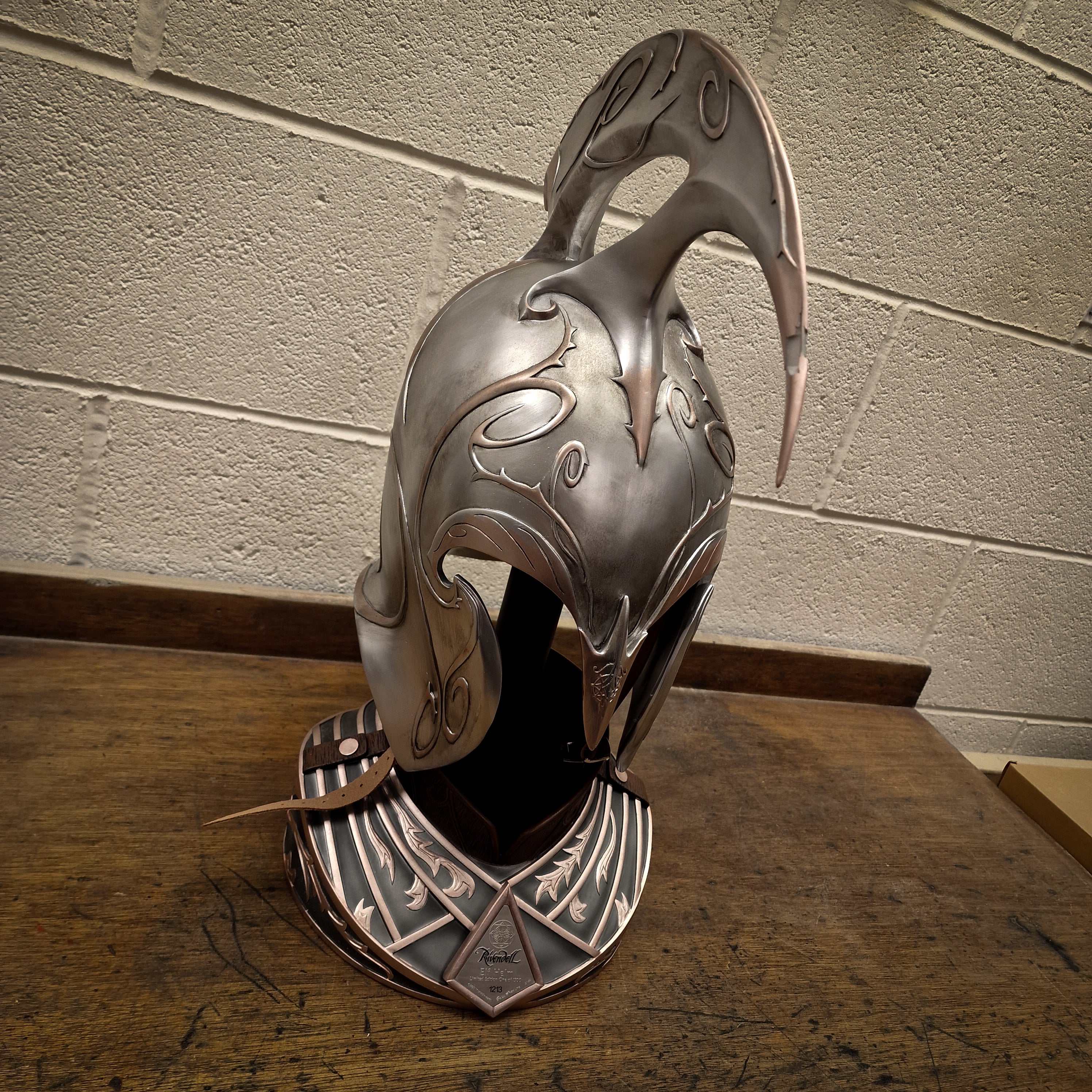 Showcase it proudly on the matching polystone and wood display stand sculpted in the shape of the Rivendell guard neck and shoulder armor. Each Rivendell Elf Helm is serialized and presented with a Certificate of Authenticity.