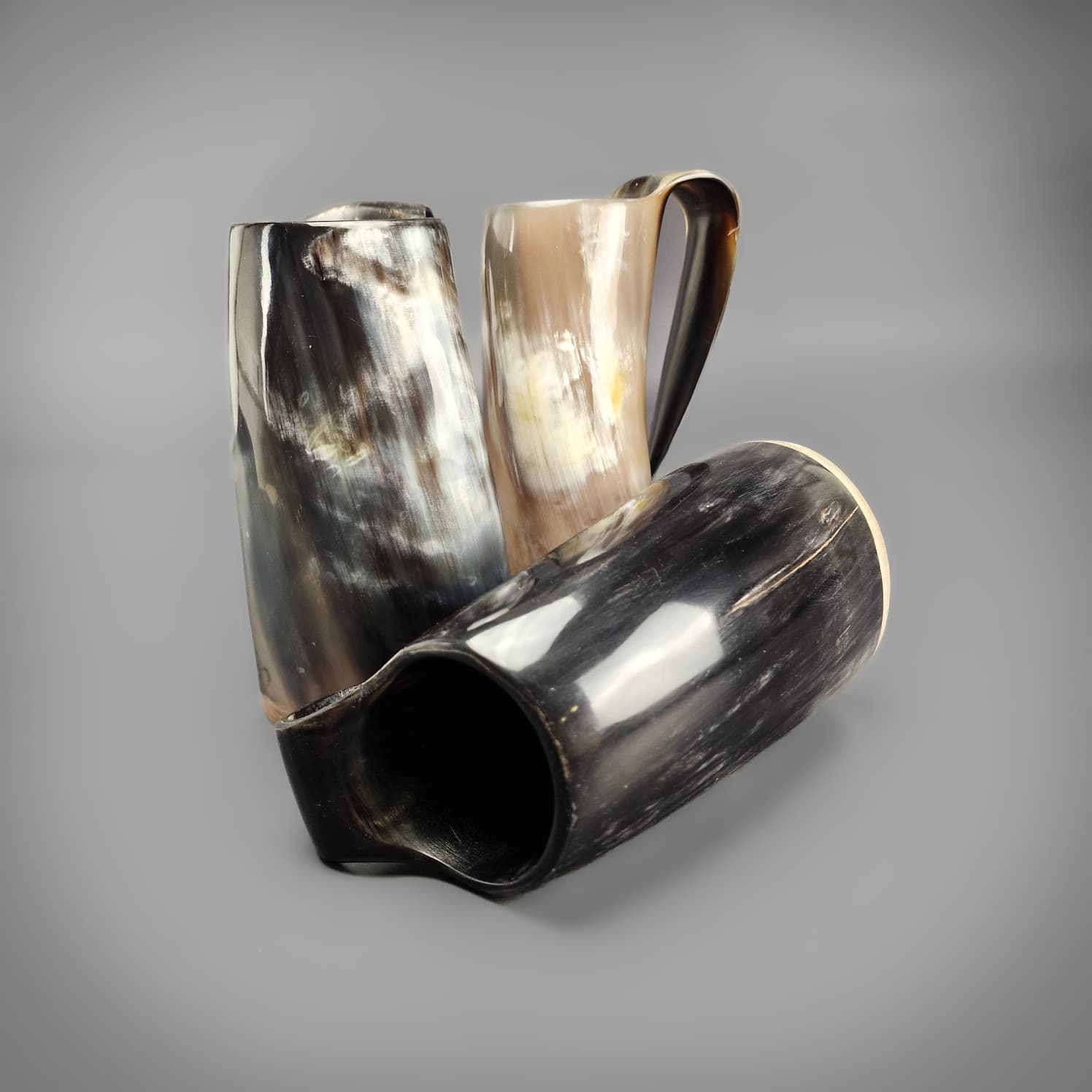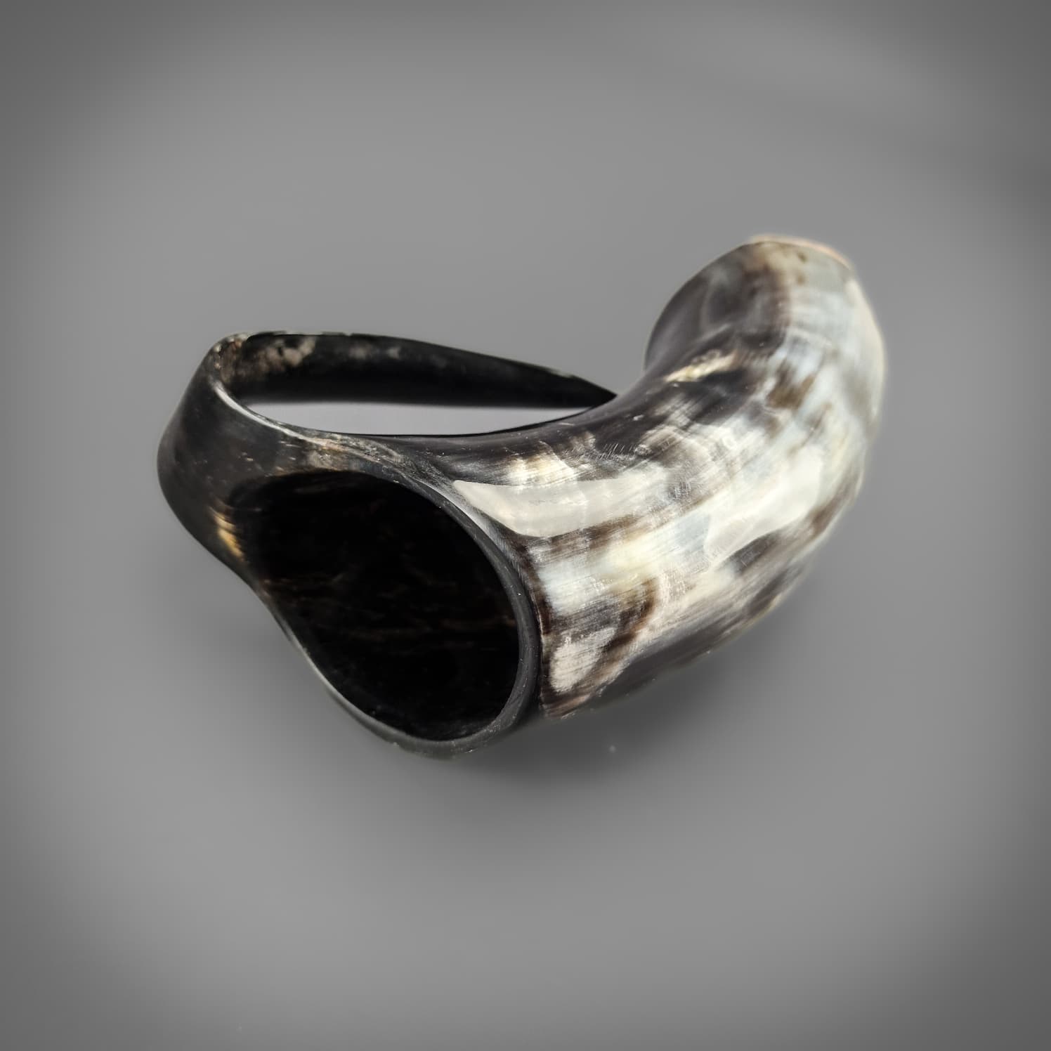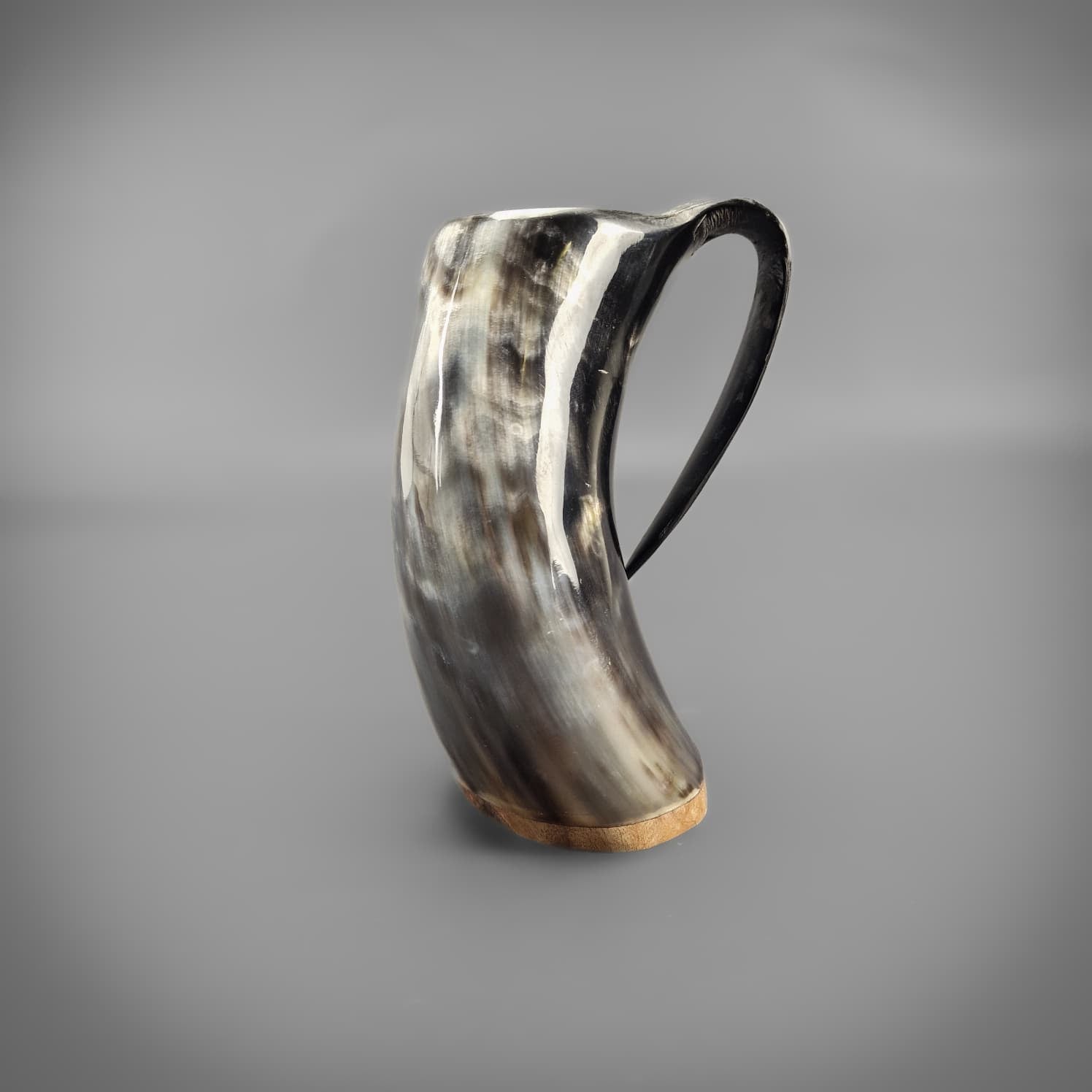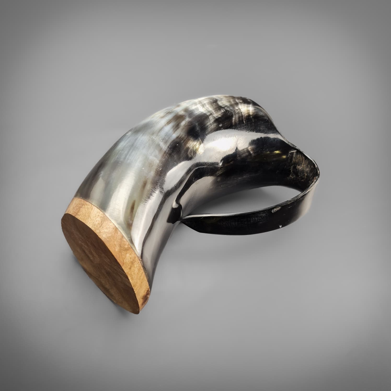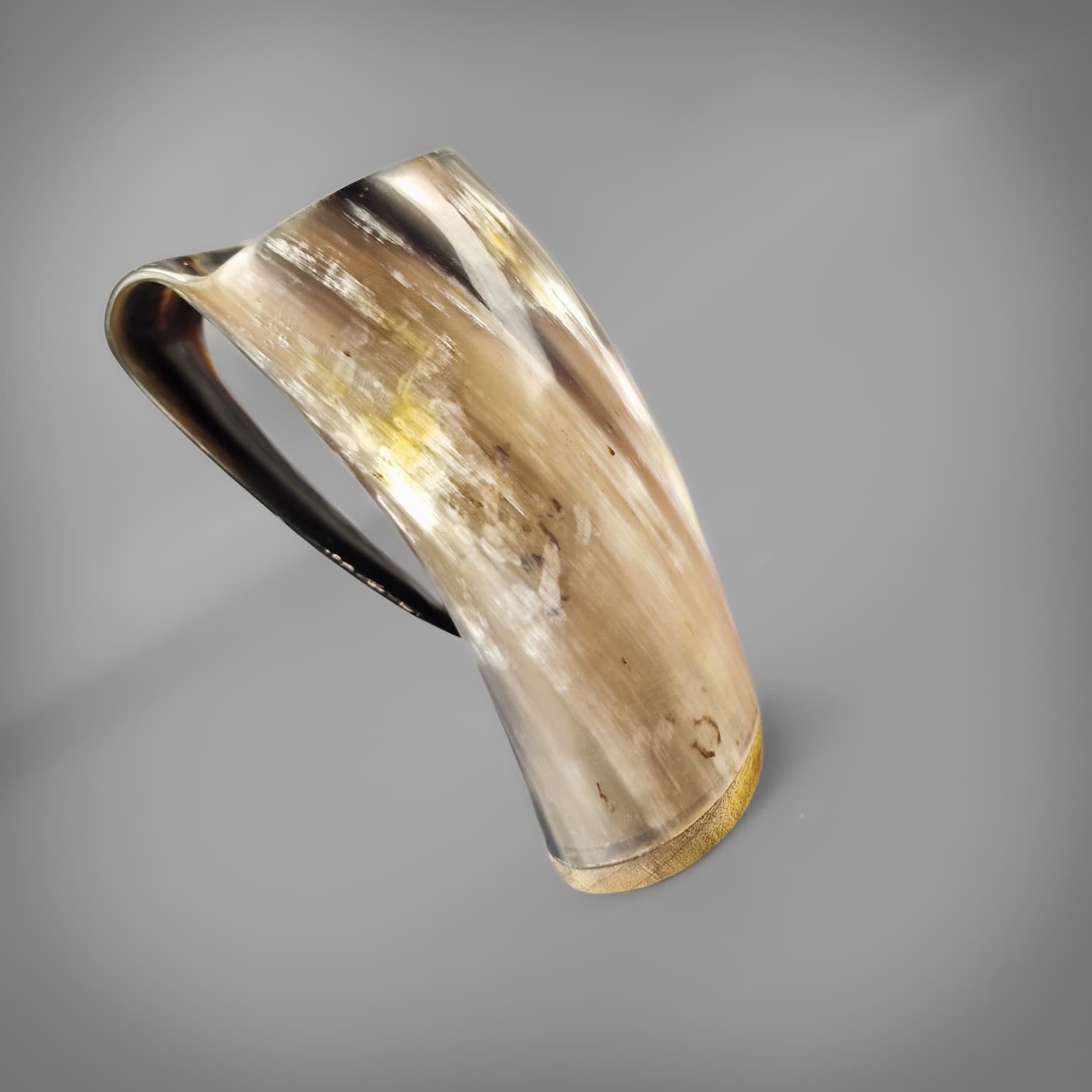 This is a beautifully polished horn tankard. The interior is sealed with resin for the best drinking experience, and to prevent damage to the horn.