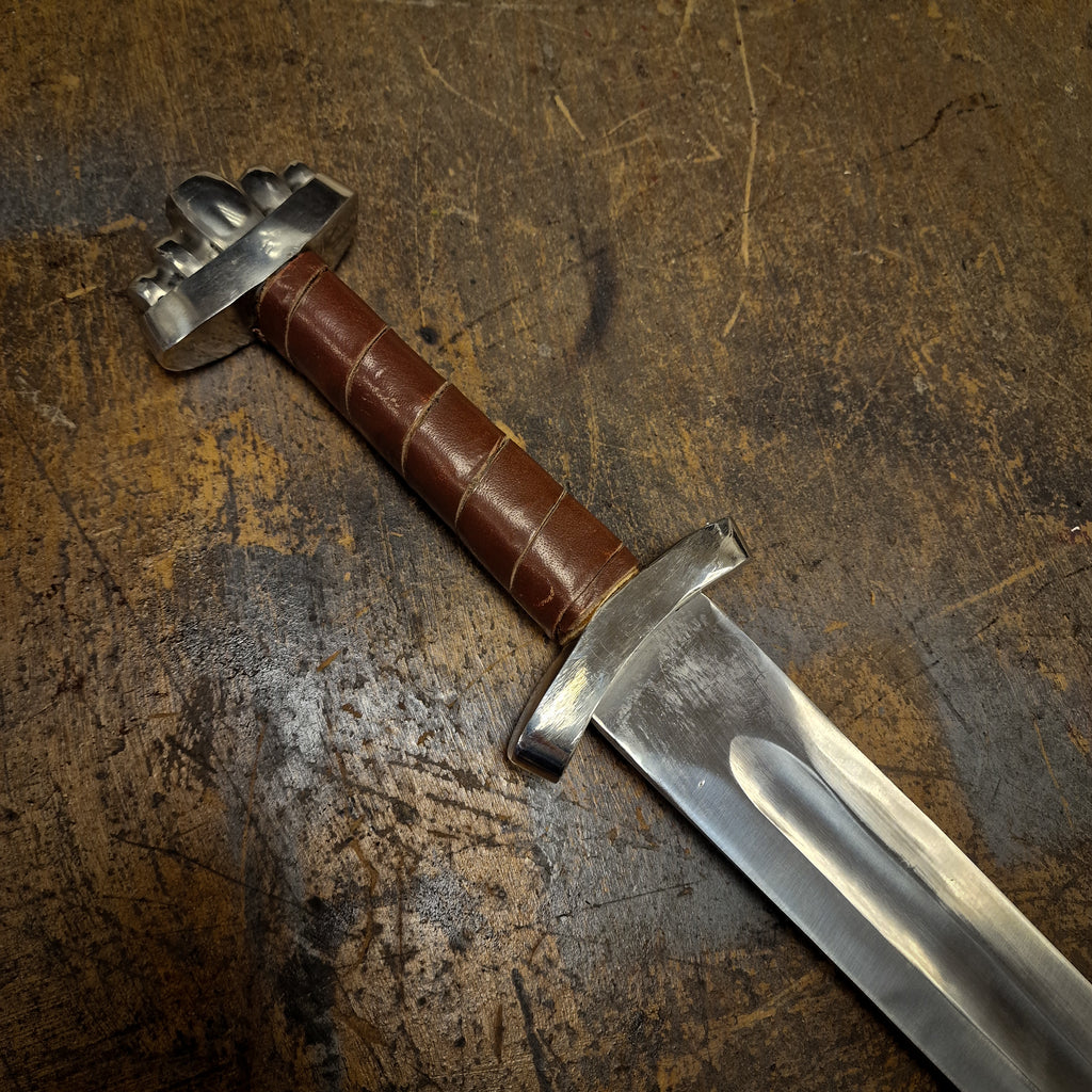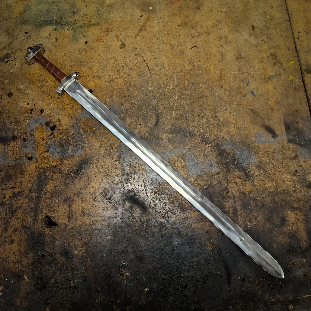 This one off rugged Viking sword- based on designs that were popular throughout the Viking Age. A straightforward, no-nonsense approach to swordsmithing has produced a really solid result in this sword. This makes it an affordable, authentic, solid, hand-finished sword with a rustic hand hammered finish.