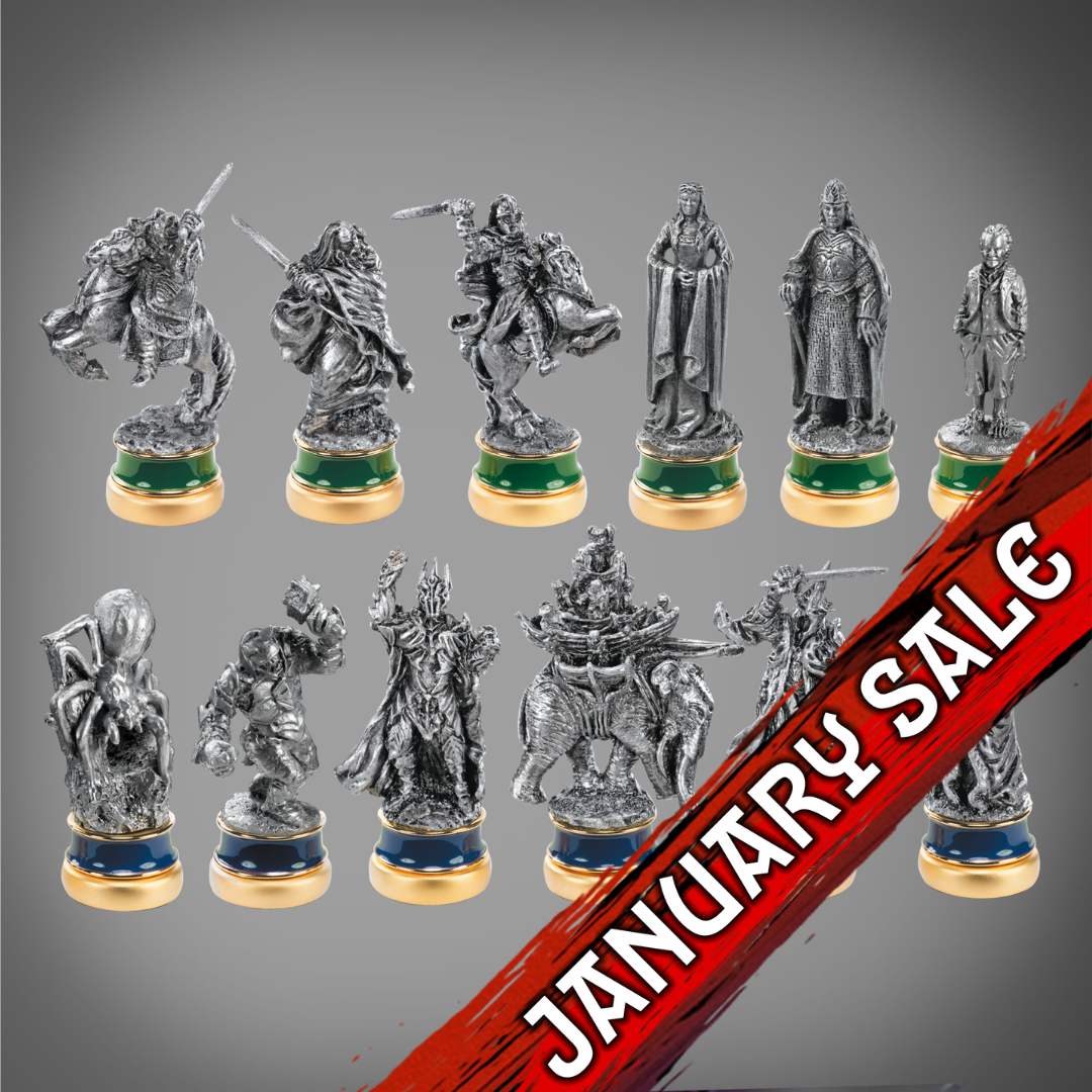 12 miniature sculptures portraying unforgettable characters from the third and final installment of The Lord of the Rings film trilogy, The Return of the King (2003).