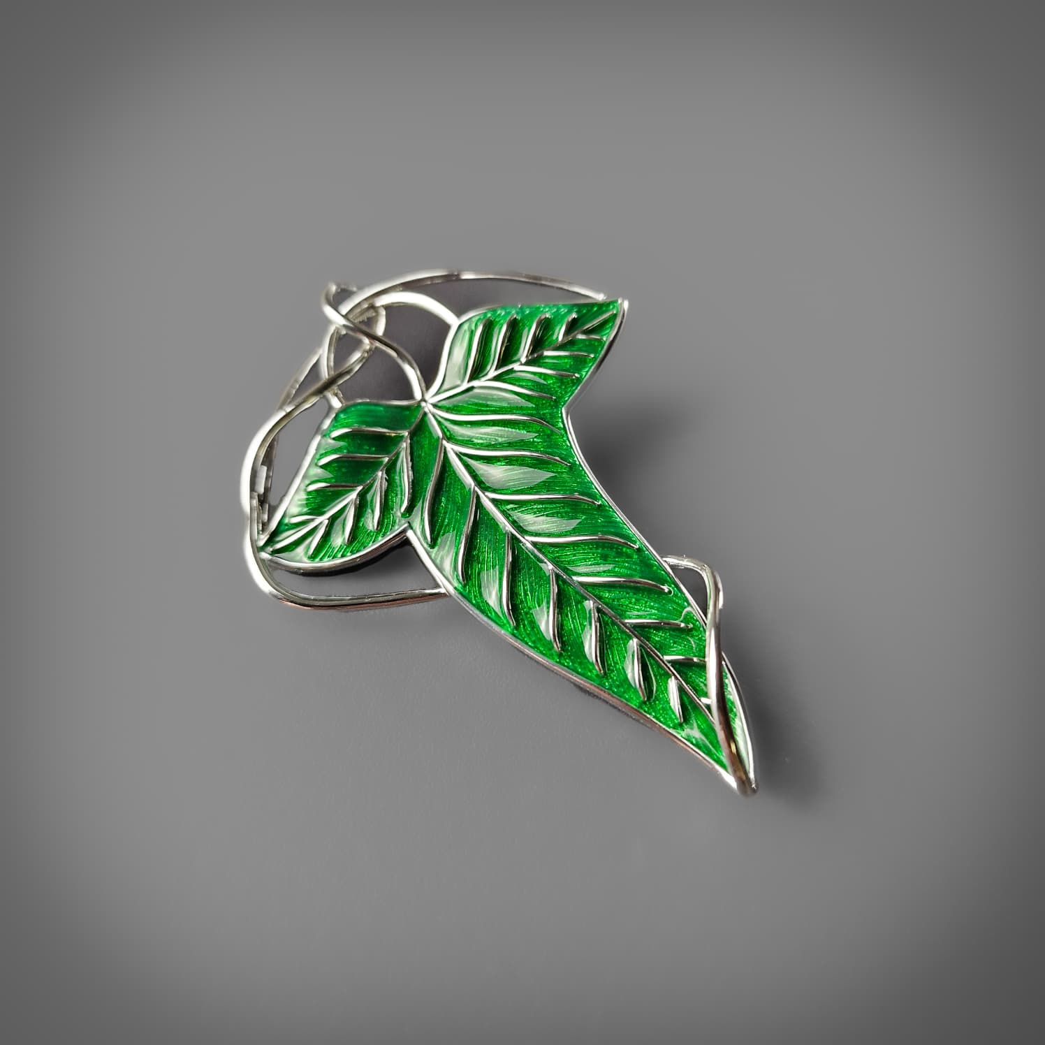 A costume replica of the Elven brooches gifted to the Fellowship of the Ring in Lothlorien, with rich green enamelling.