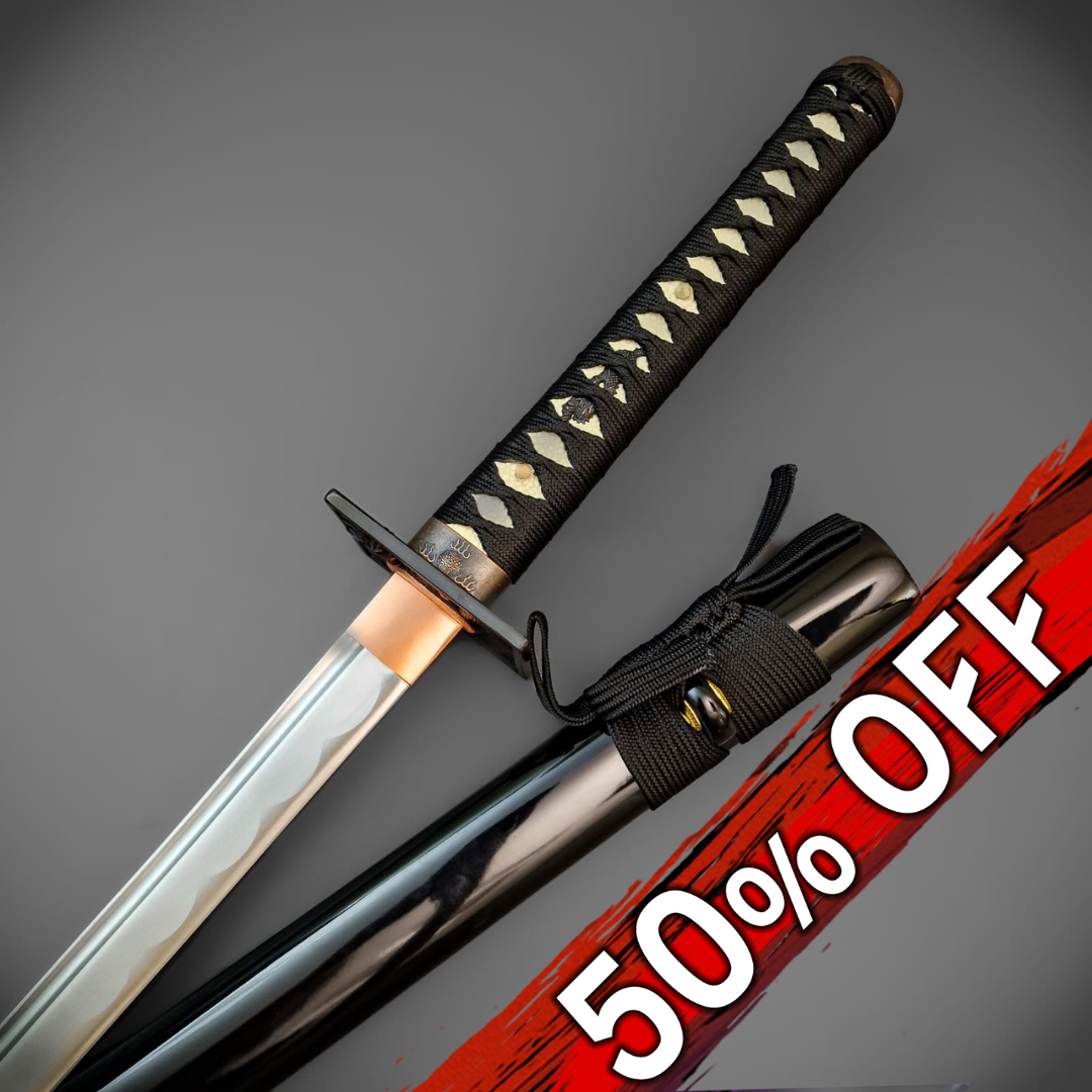 This straight katana (known as a chokutō (直刀) is a single-edged Japanese sword that was mainly produced prior to the 9th century. This katana is hand-forged in a traditional technique, with a striking high carbon steel blade housed in a wooden black saya for protection.