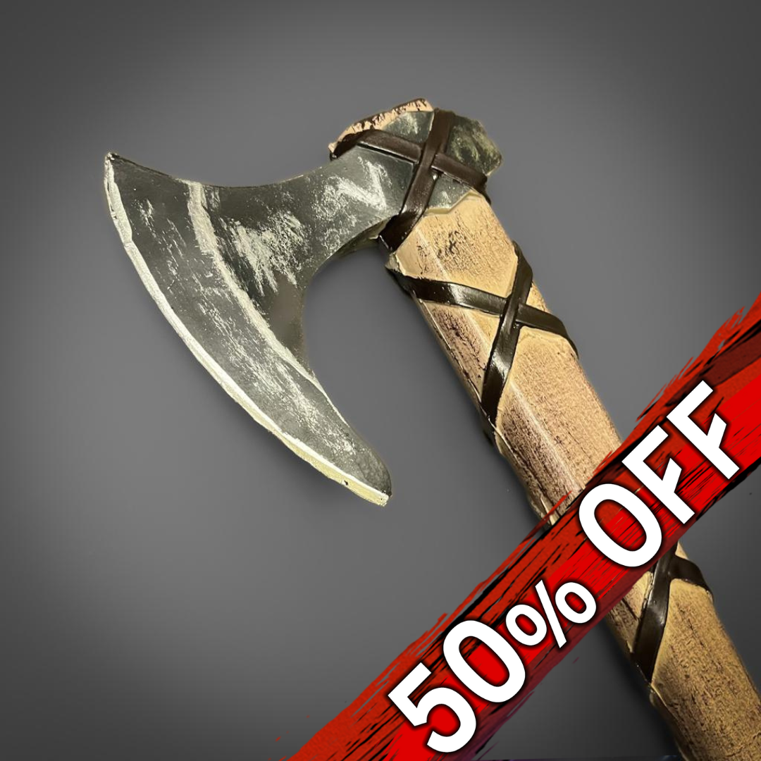 A foam Ragnar axe, perfect for whacking boxes and unsuspecting siblings. Warning: may induce maniacal laughter and family arguments, please ensure all fine China and other fragiles and safely away from the destruction zone before wielding.