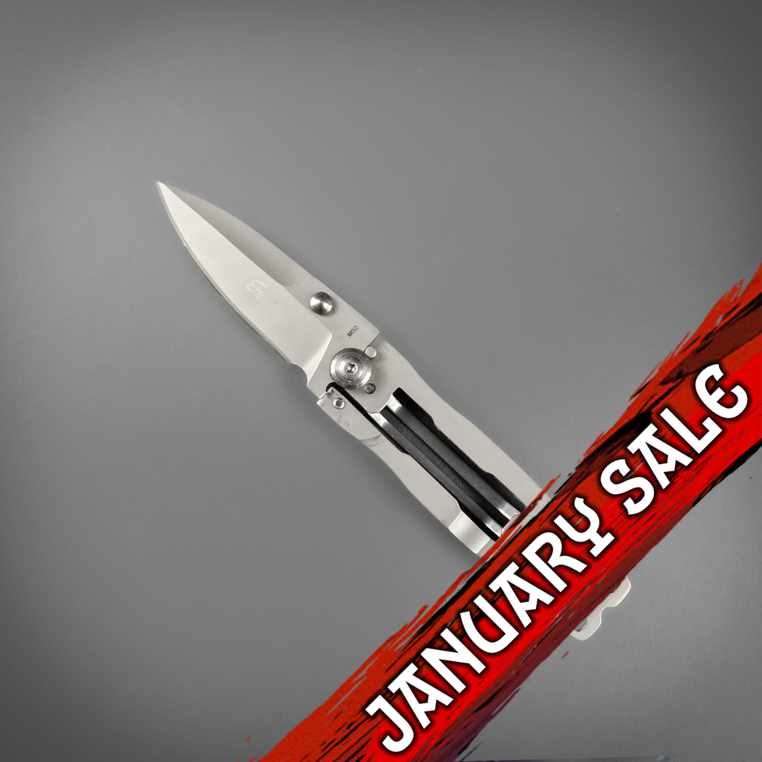 A locking & folding stainless steel knife, sharpened to keen edge. Designed for convenience, this super lightweight, 1cm-wide knife features a bottle opener and belt clip.