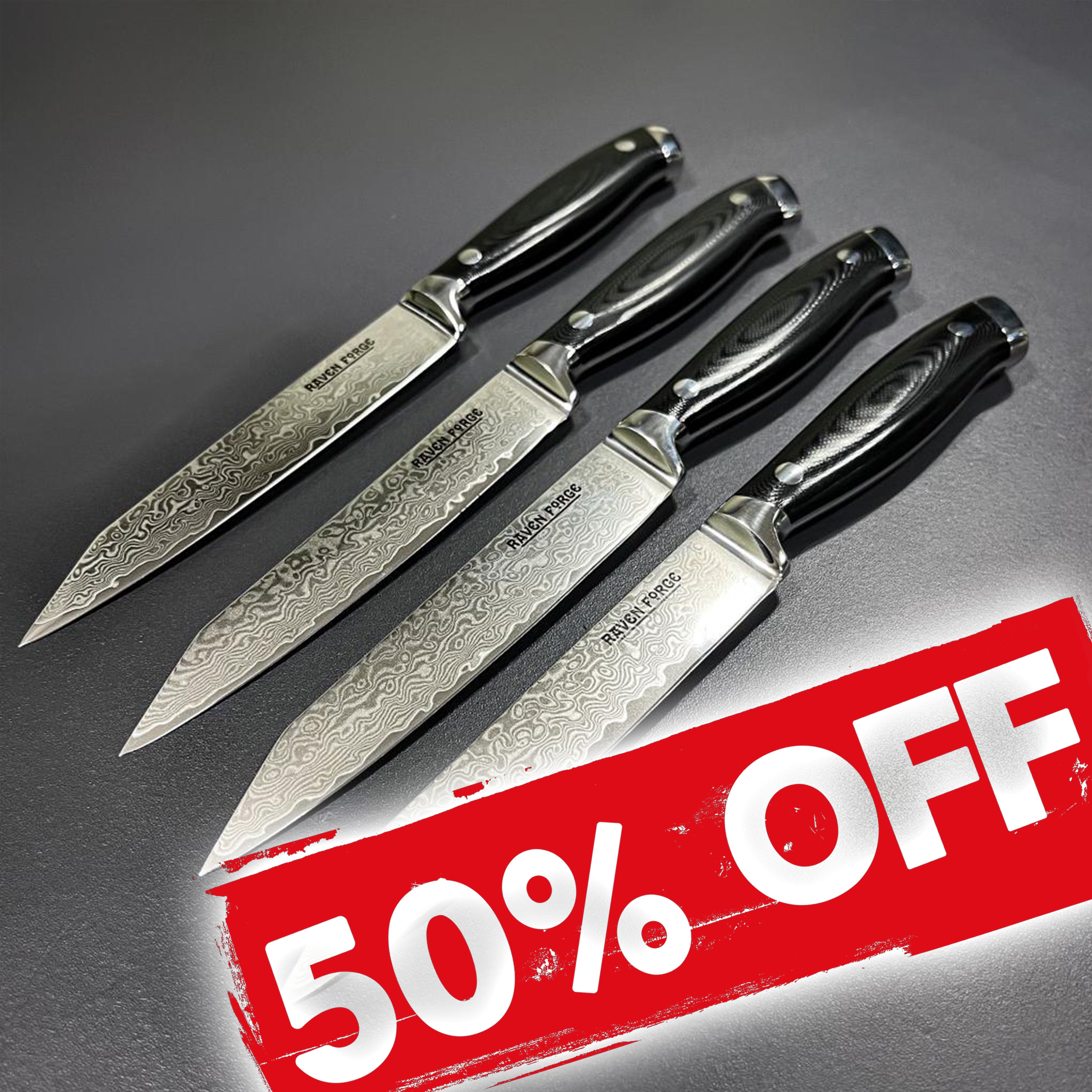 150,000+ CommunityDamascus Steak Seax Set of 4 - Raven Forge
