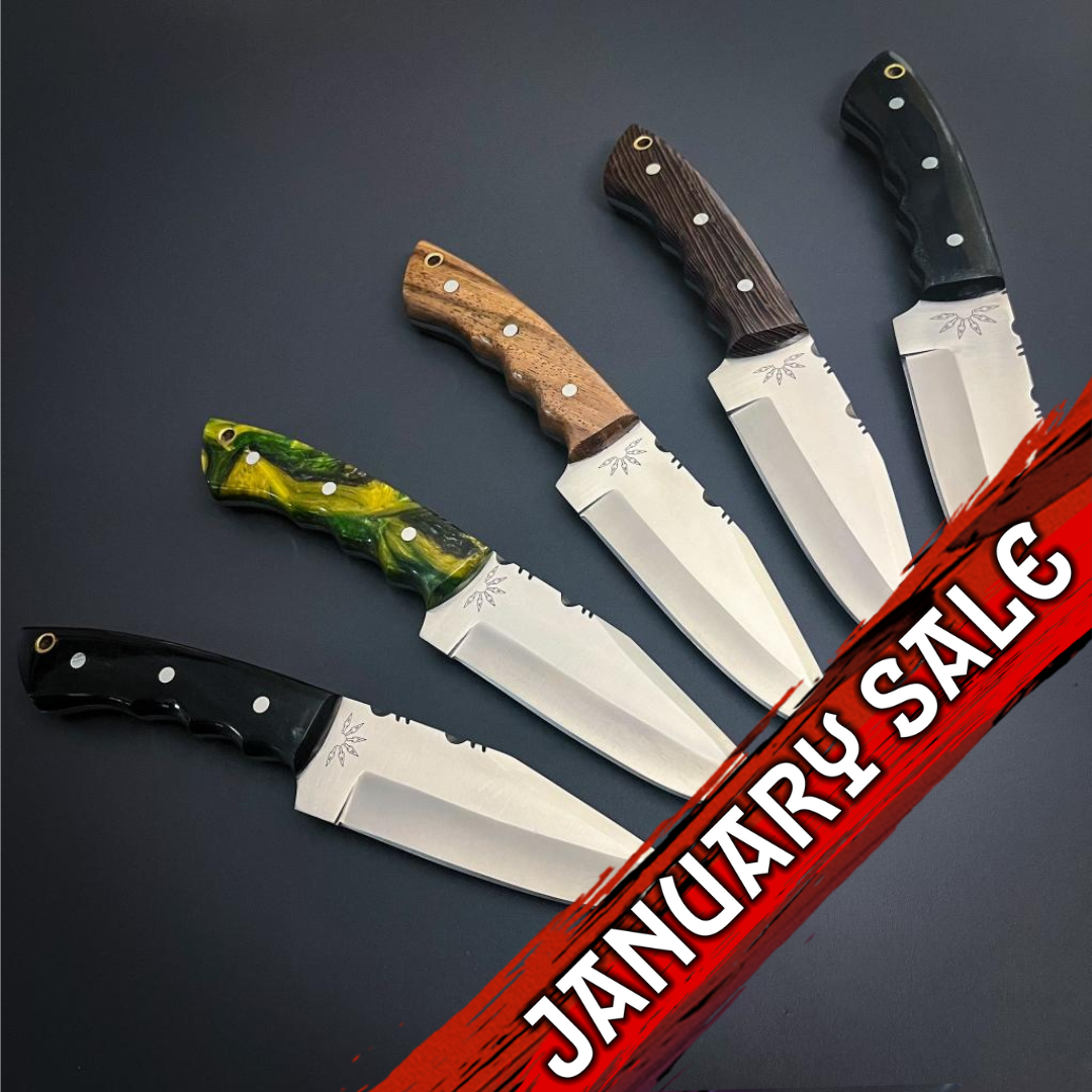 New and improved; these new steel knives are incredibly aesthetic and sharp, with an etched Raven Forge logo and they are full tang steel from top to butt. We have 5 different handle variations: buffalo horn, serpentine resin, Rosewood, Wenge wood, and black micarta.